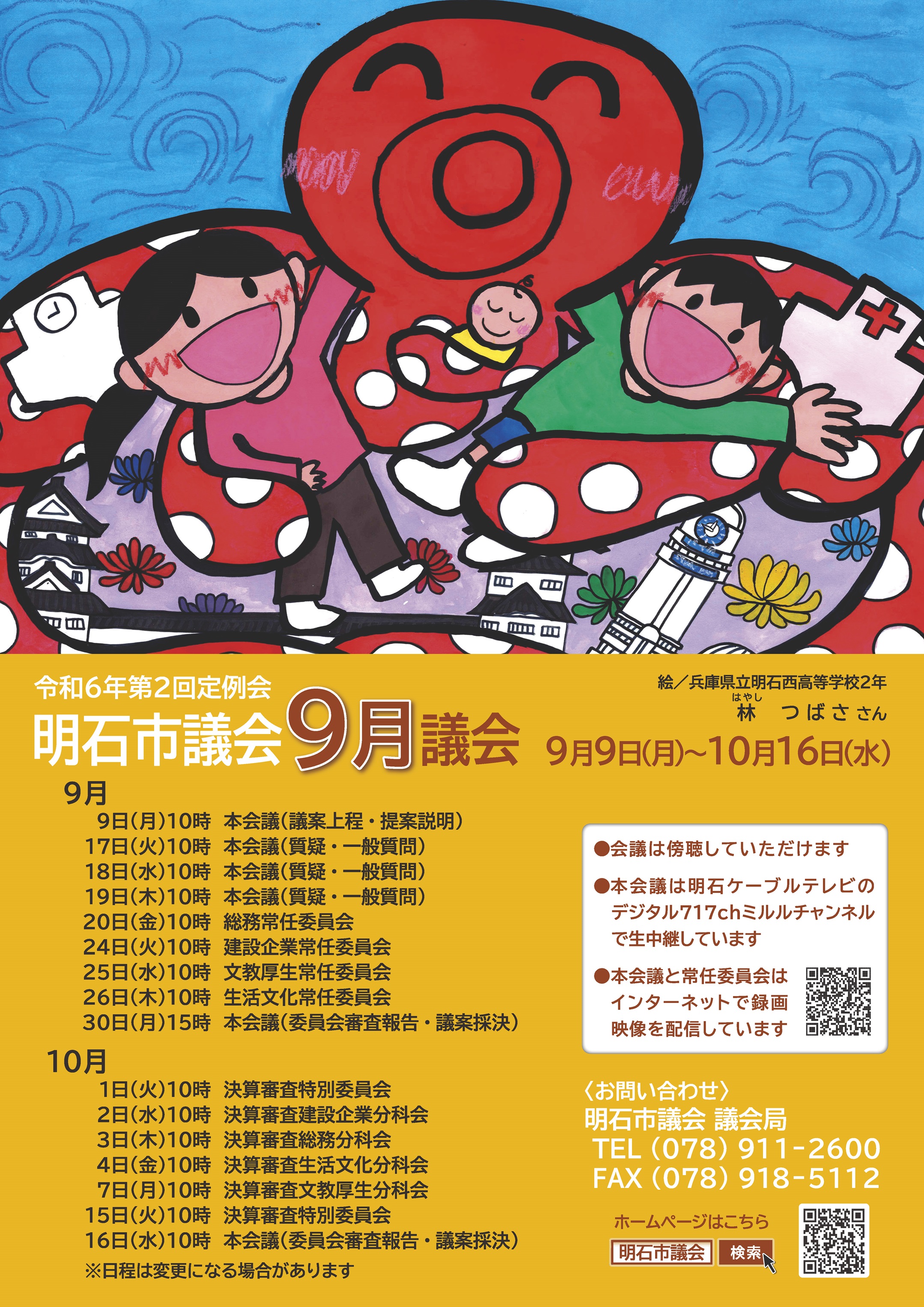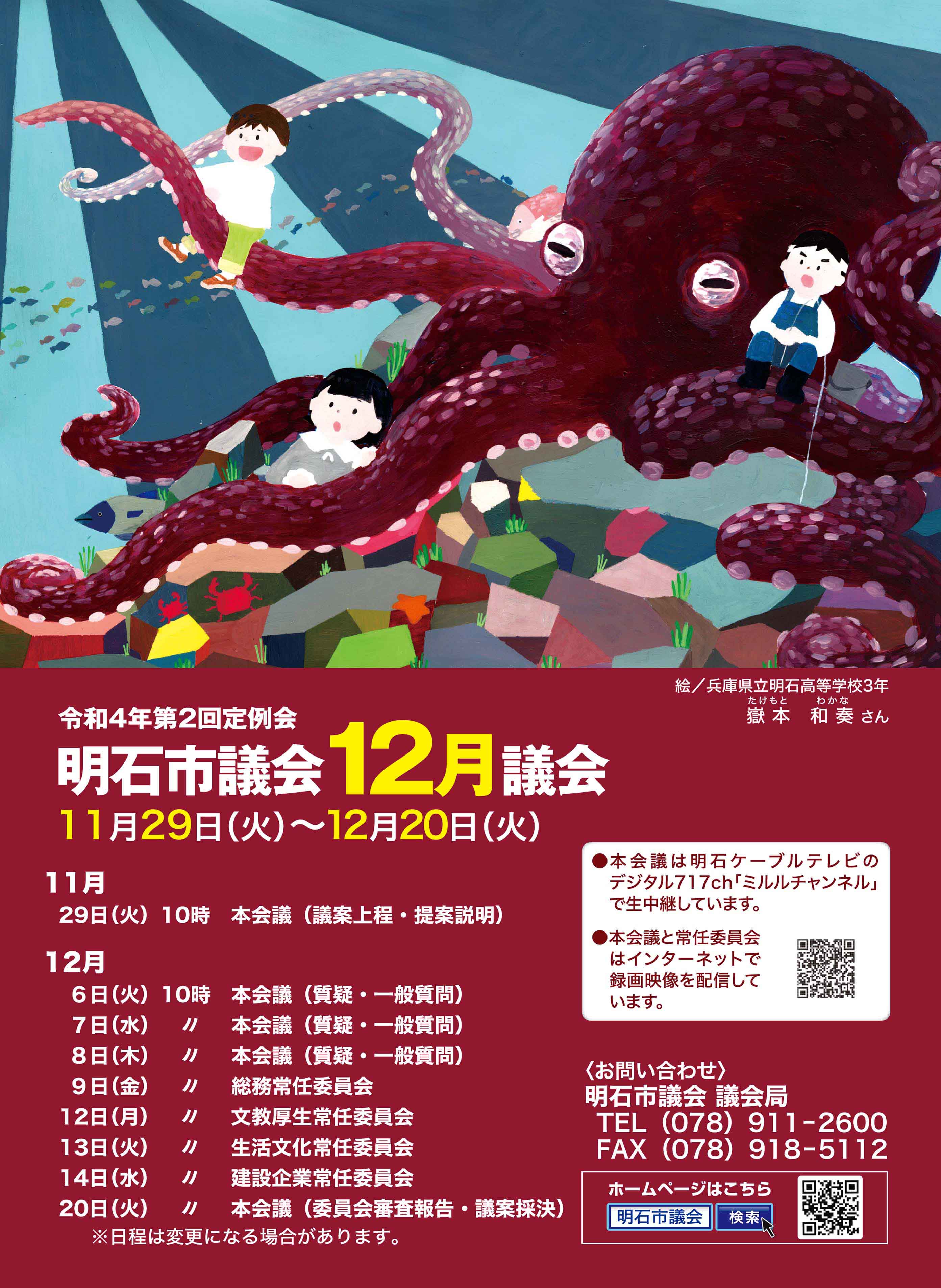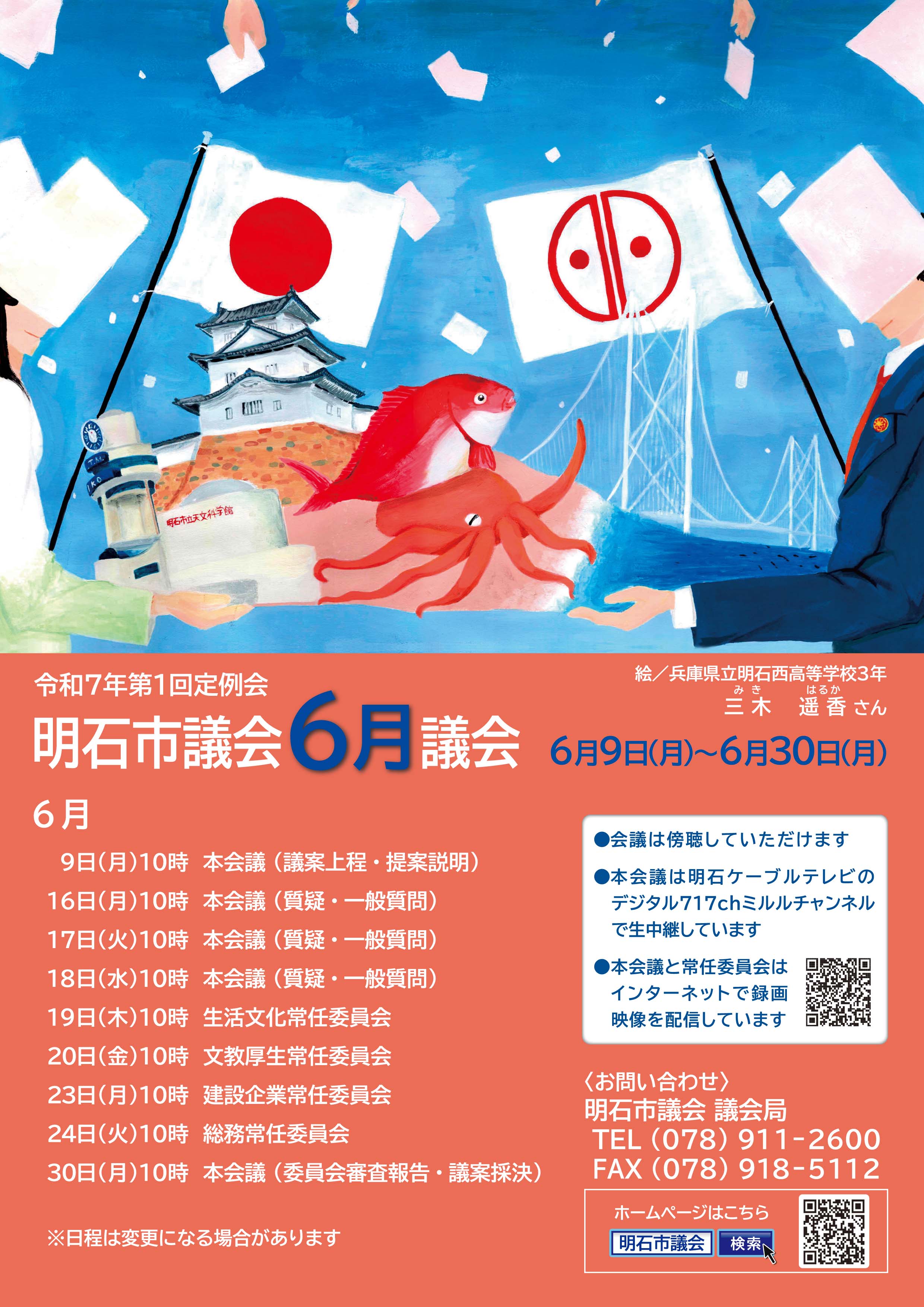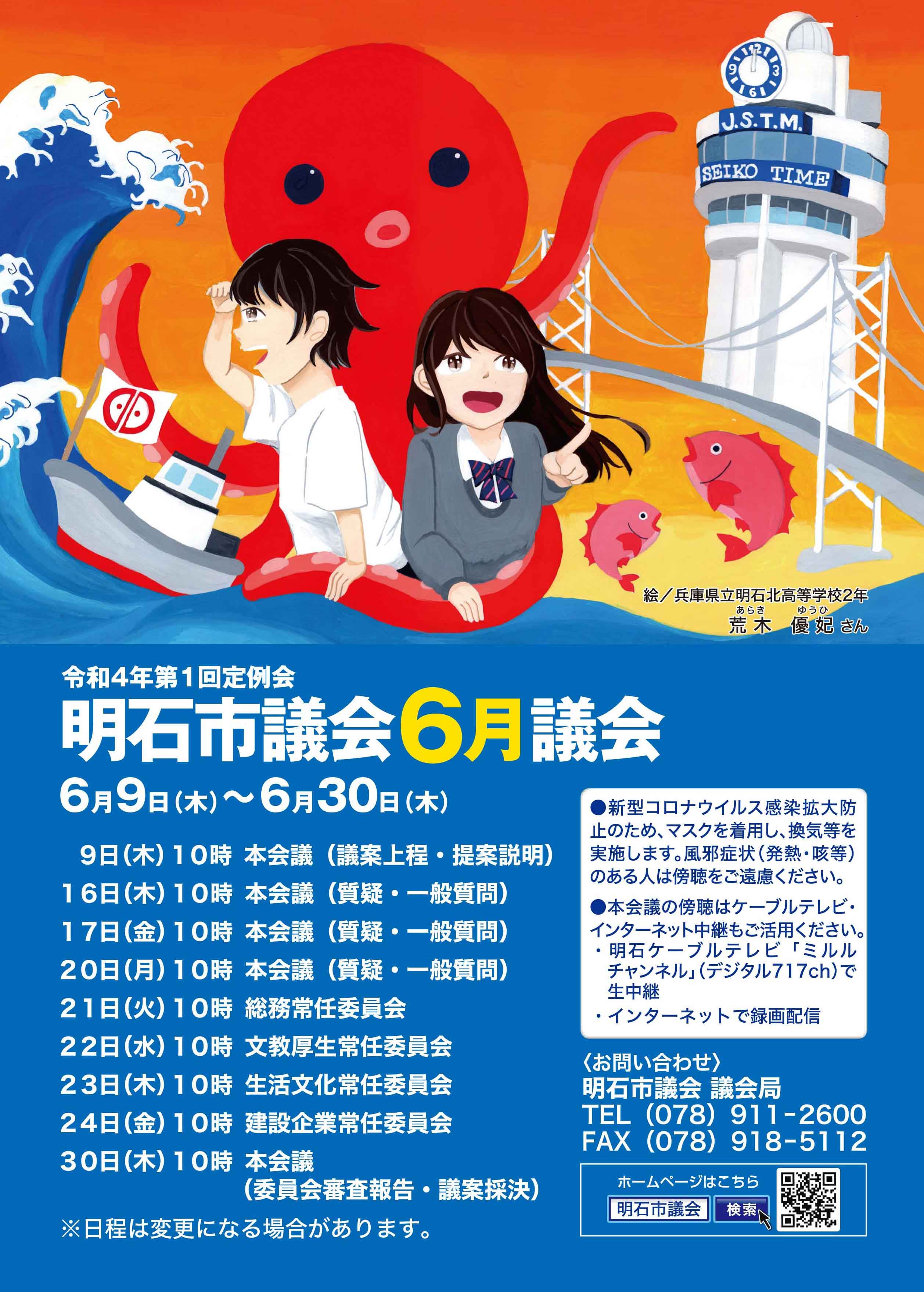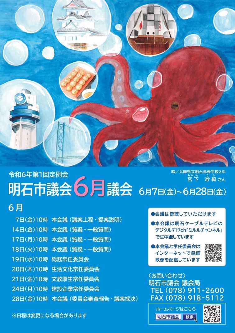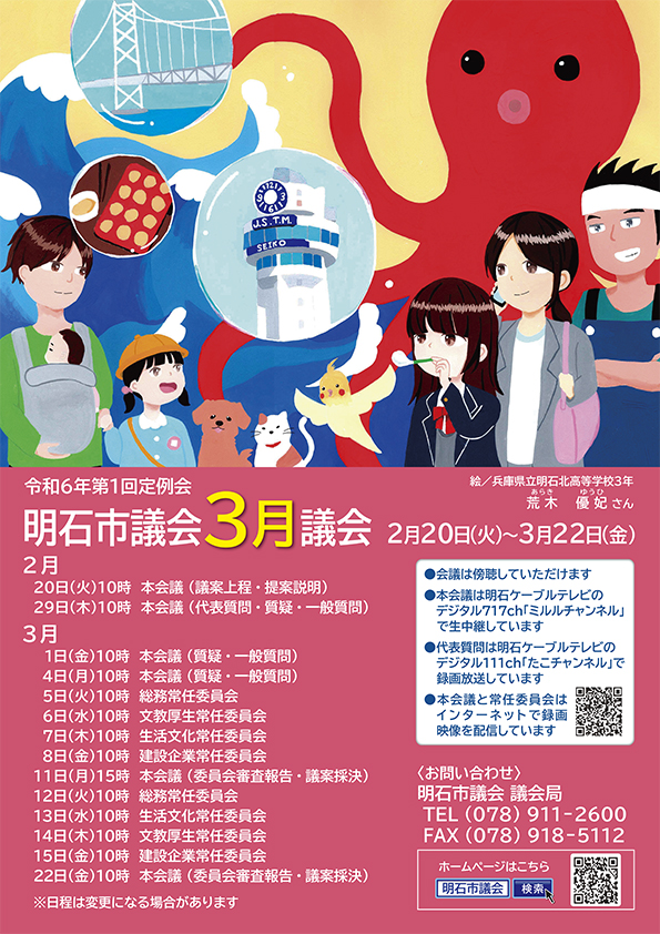 明石市議会では、市民の皆様に市議会への関心を高めてもらうため、年4回の議会開催をお知らせするポスターを作成しています。