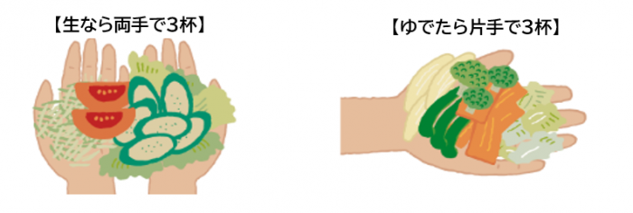 ★野菜350gは生の状態で両手3杯分。ゆでた(加熱した)状態では片手3杯分。