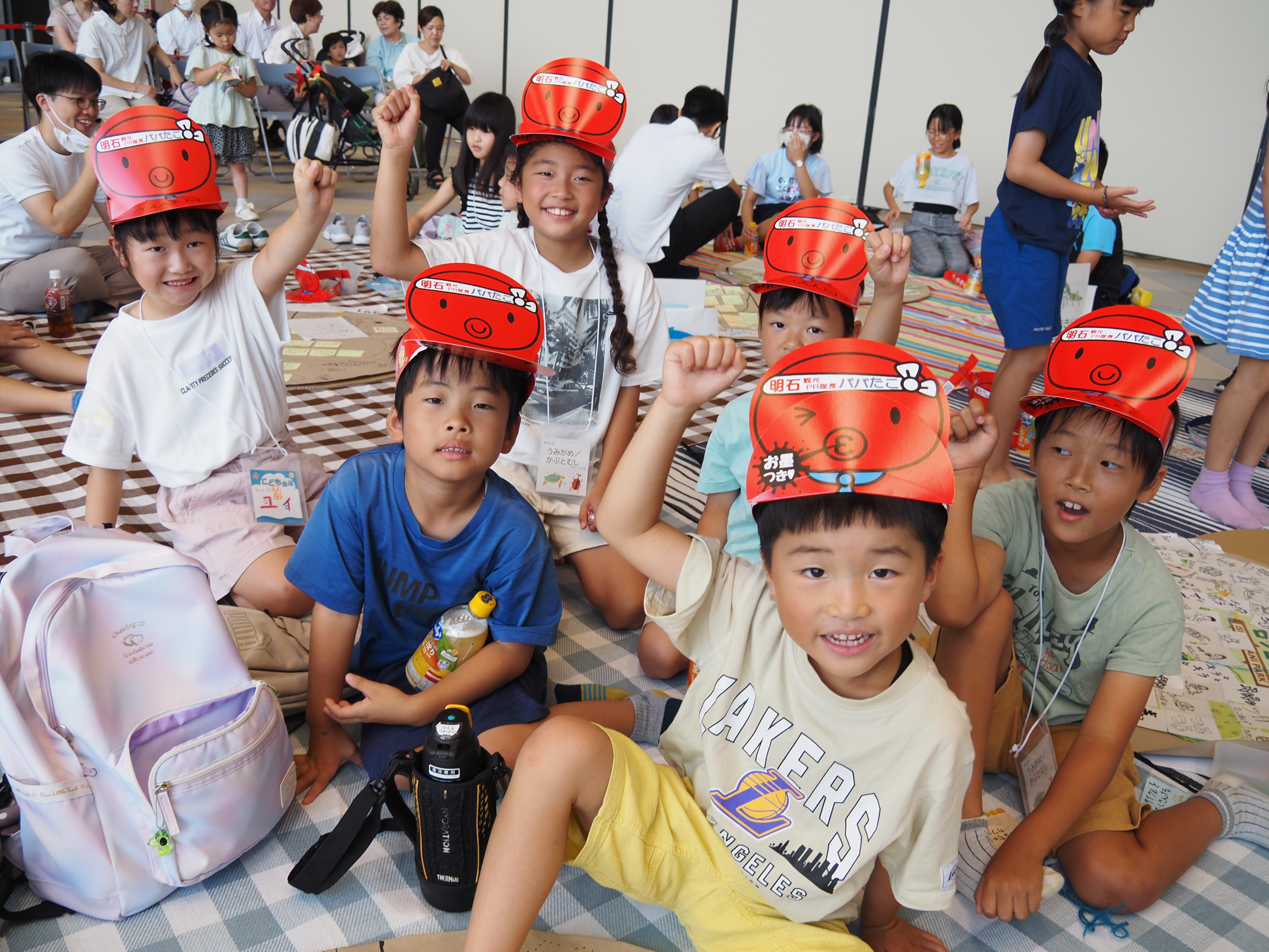 進行役の「やっちー」はなんと自転車で登場!紙芝居からのスタートに、こどもたちは大喜びでした。そして、今回のクイズでは「明石駅の構内にいる狸の置物の名前は?」 「コウノトリは、どんないきものを食べているのでしょうか?」など「明石」にまつわる問題が出され、意外な答えに驚きの声があがりました。