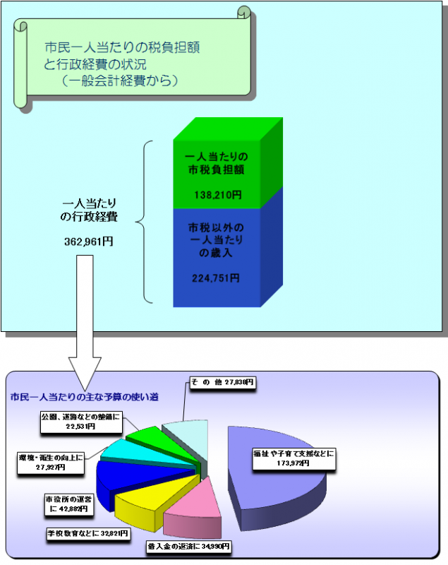 市庁舎の維持管理や窓口サービスなど市の事務に使われる費用です。